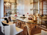 The hemispherical roof has transparent, triangular, curved glass panes that blend city lights at night and let natural light penetrate during the day. When the weather is not suitable for dining in the open air, this unique space is a perfect substitution for you.