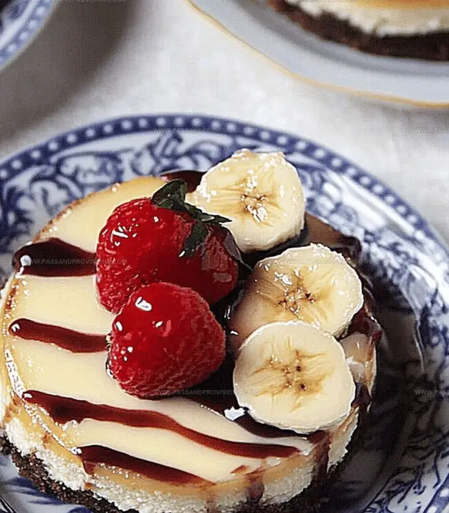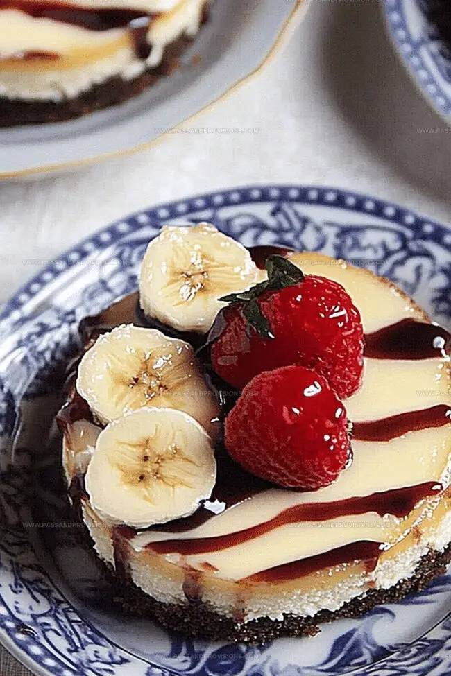 - Before serving, garnish each mini cheesecake with fresh banana slices, whipped cream, and a light drizzle of chocolate sauce for an indulgent presentation.