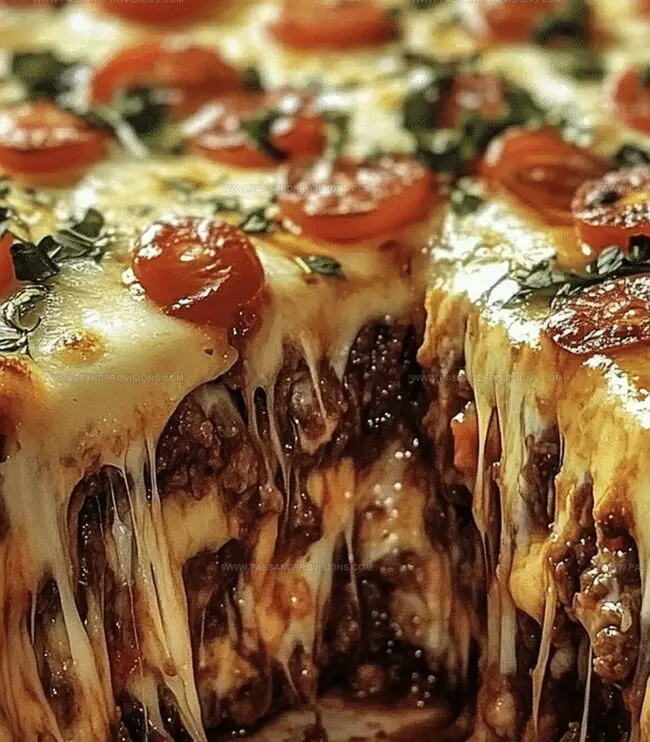 Savory beef pizza pie blends comfort with culinary creativity in a mouthwatering dish that breaks traditional pizza boundaries.