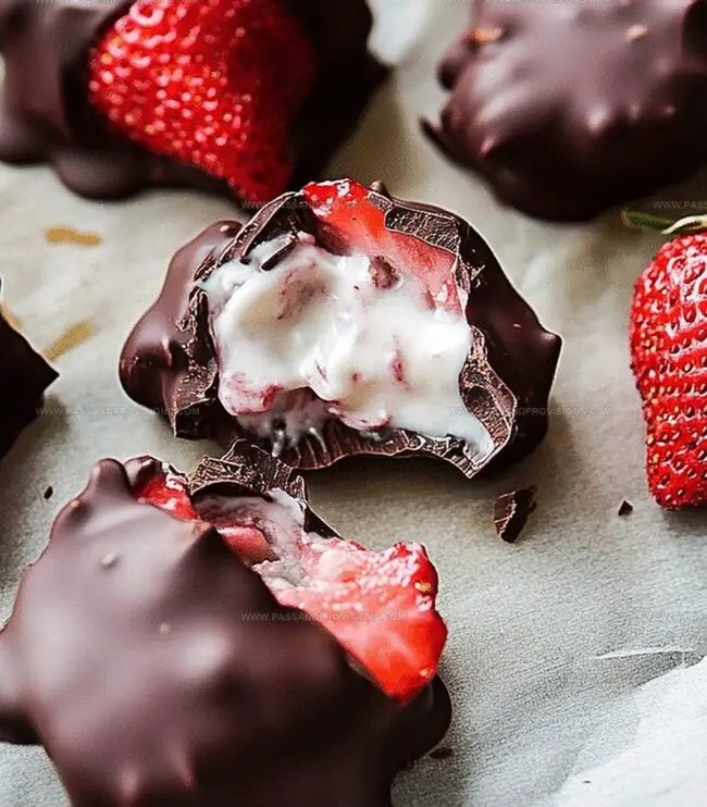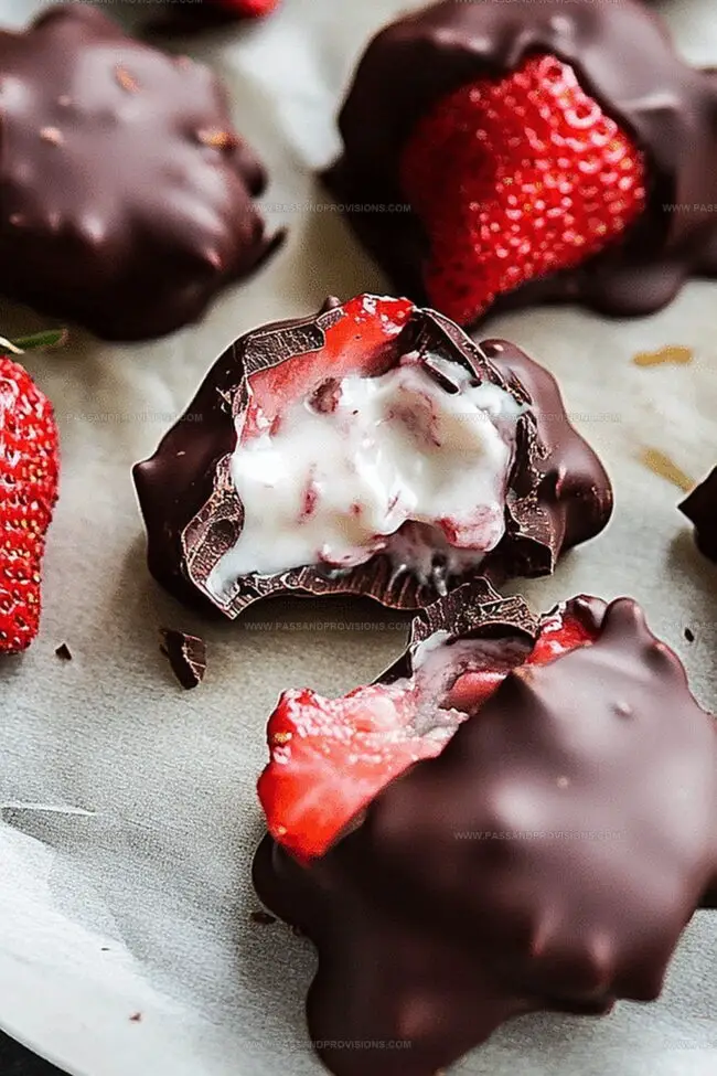 Delightful chocolate-covered strawberry yogurt clusters bring sweet, tangy magic to snack time. Creamy yogurt and fresh strawberries nestled in rich chocolate create an irresistible treat you can’t resist popping into your mouth.