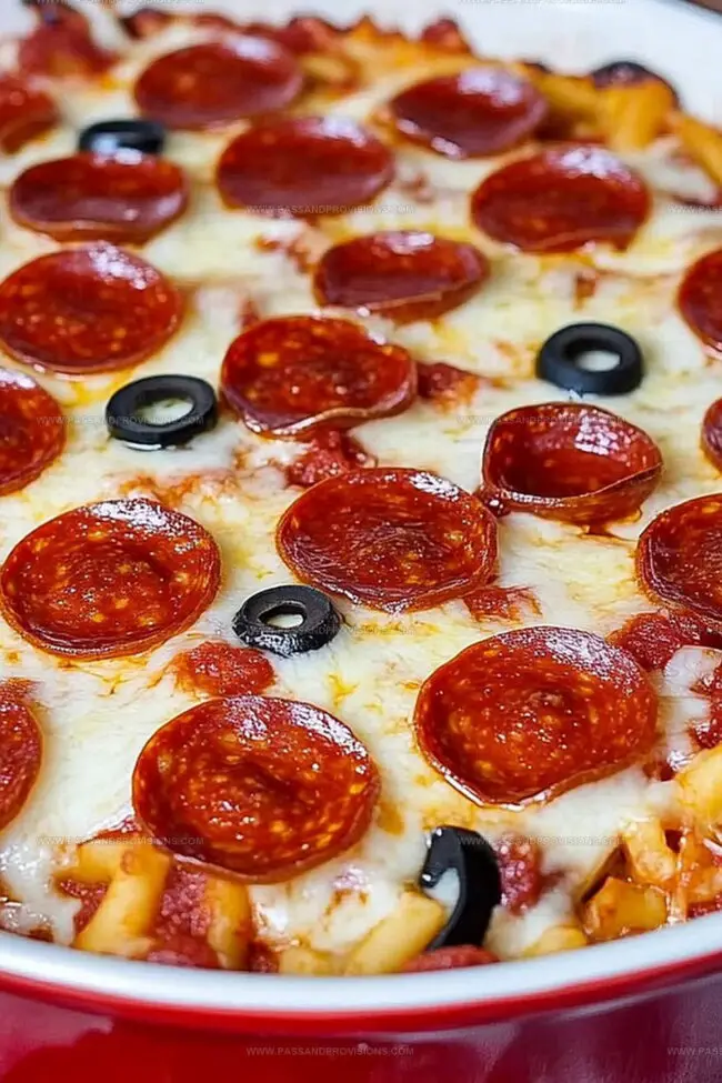 - Casserole Assembly: Layer half the pasta-sauce mixture into a greased baking dish. Generously distribute mozzarella cheese and pepperoni slices. Repeat layering process, ensuring even coverage. Crown the dish with a sprinkle of Parmesan cheese for enhanced depth.