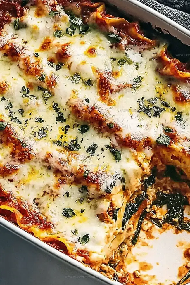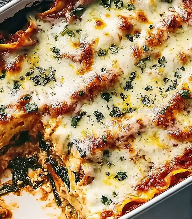 Cheesy spinach-zucchini lasagna brings Italian comfort straight to kitchen tables with layers of creamy goodness. Rich cheese and tender vegetables create a delightful Mediterranean-inspired meal you cannot resist.