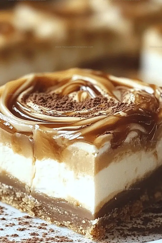 Sweet dreams come alive with these decadent coffee caramel cheesecake bars that promise pure indulgence.