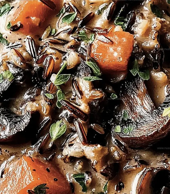 Fold the cooked wild rice into the creamy mushroom base. Adjust seasoning with salt and freshly ground black pepper. Let the soup simmer for an additional 10 minutes to meld the flavors together. The soup should be thick, creamy, and bursting with earthy mushroom and nutty wild rice goodness.