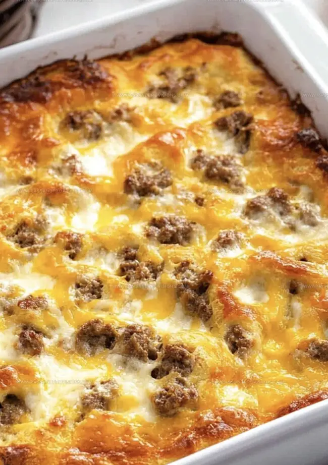 Pour your egg mixture evenly over the sausage and cheese layer. Slide the dish into the preheated oven and let the magic happen for 25-30 minutes. You’ll know it’s ready when the eggs are set and the crust turns a gorgeous golden brown.