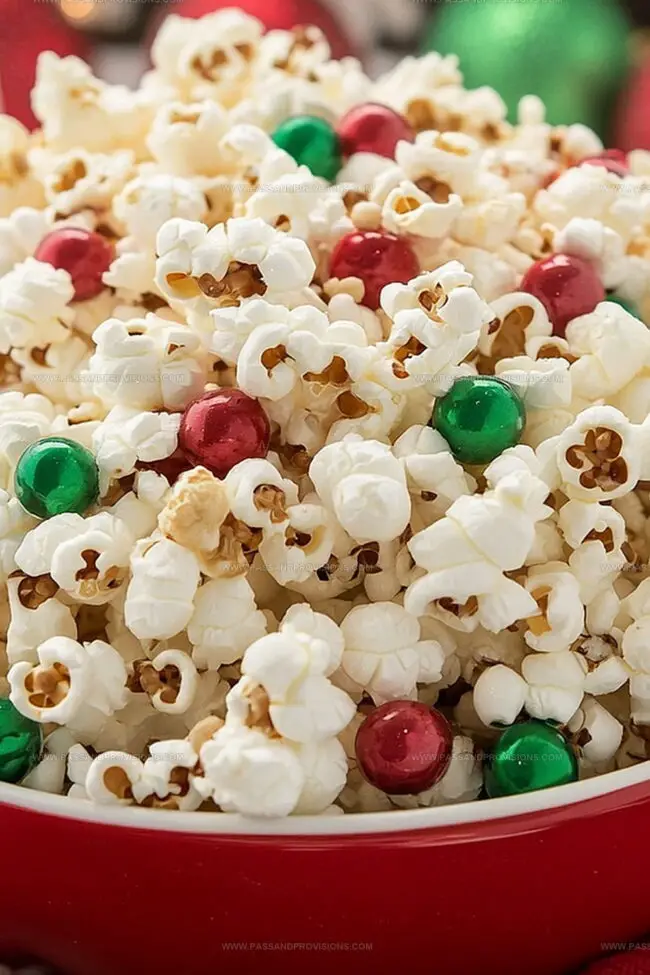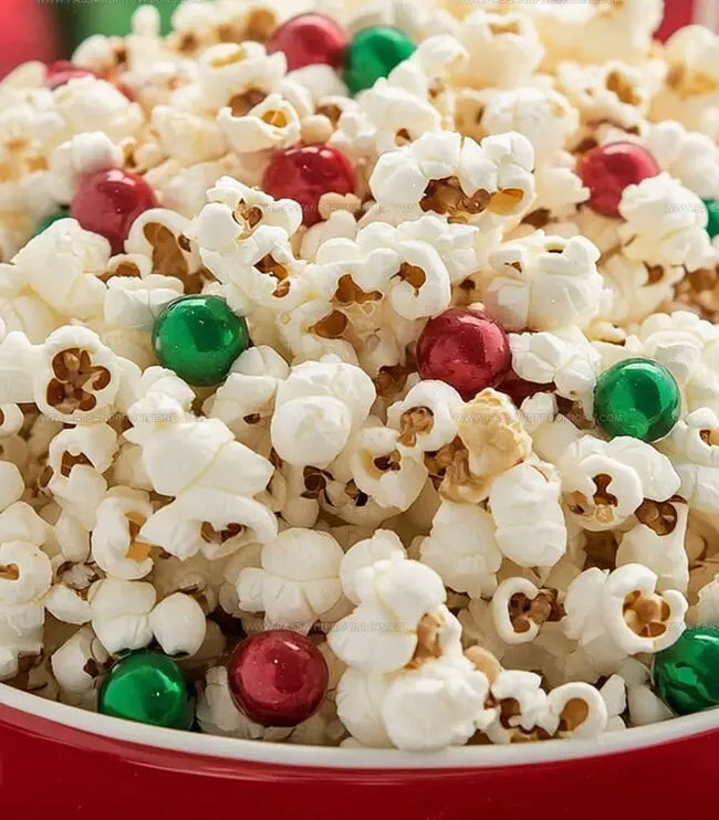 - Coating and Decorating: Drizzle melted white chocolate over popcorn, ensuring an even coverage, then immediately scatter Christmas-themed sprinkles, red and green candy-coated chocolates, and crushed candy canes for a festive appearance.