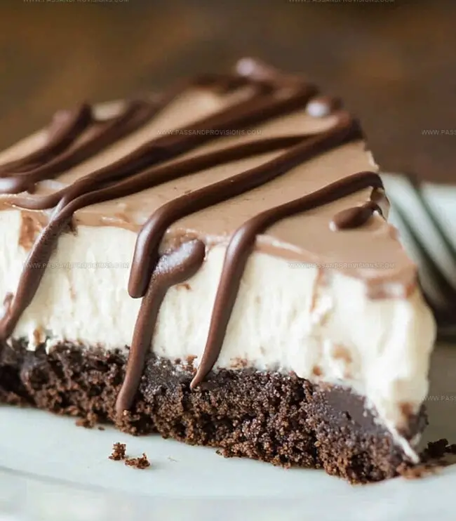 - Final Presentation: Carefully release the cheesecake from the springform pan, adorn with piped whipped cream, and elegantly drizzle the brownie batter glaze for a stunning finish.