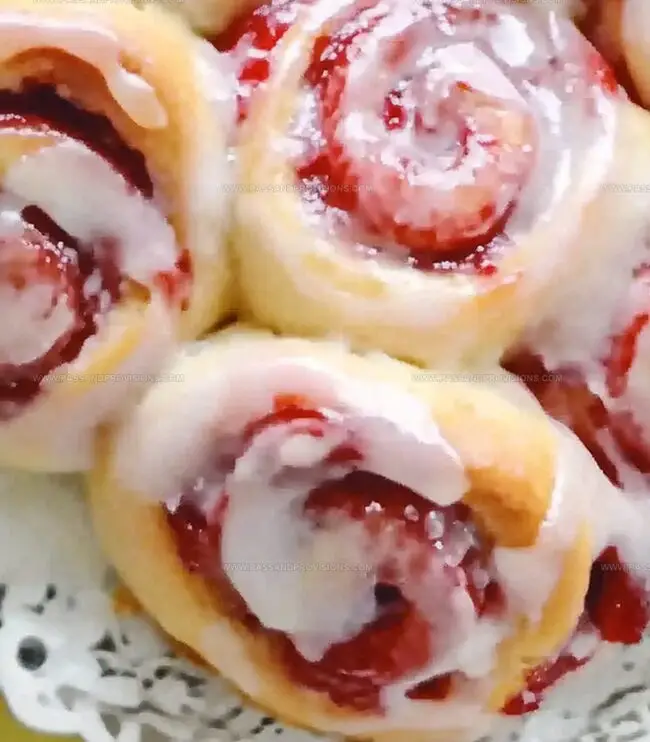 Soft, pillowy dough meets vibrant cherry swirls in this decadent sweet rolls recipe.