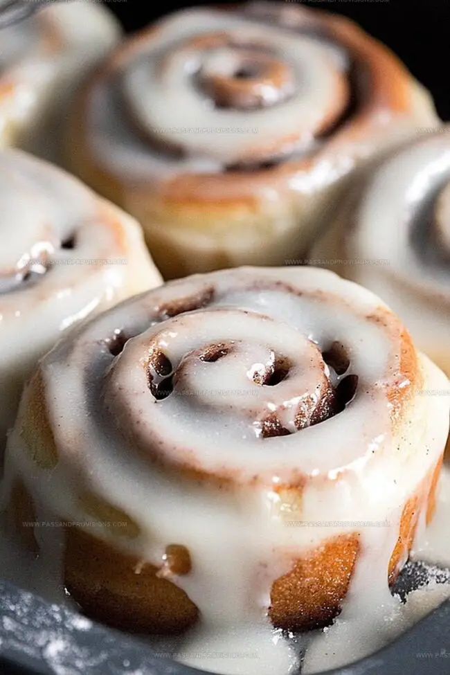 Whip up a creamy glaze and drizzle generously over warm rolls, creating a sweet finale.