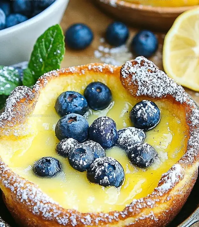 - Final Presentation: Extract Dutch baby from oven, artfully spread lemon curd across center, generously scatter fresh blueberries. Delicately dust with powdered sugar and optional botanical garnishes. Serve immediately while magnificently inflated and steaming.