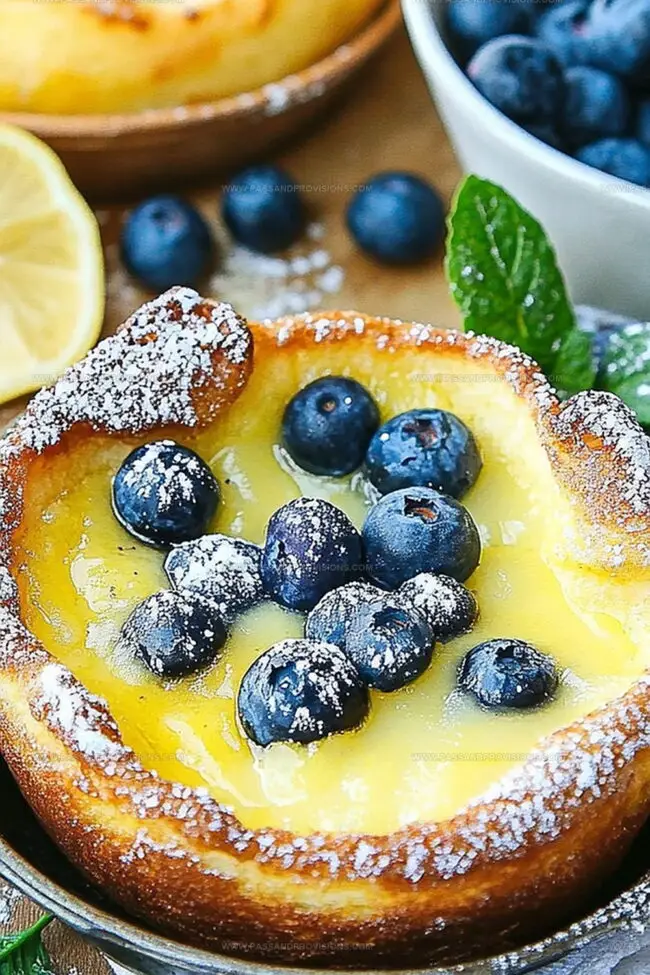 Breakfast takes an elegant turn with these delightful dutch babies bursting with tangy lemon curd and sweet blueberries.