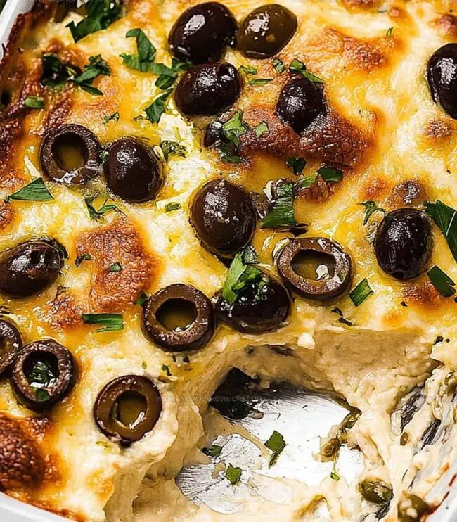 Indulgent cheesy baked olive dip brings Mediterranean flavors straight to your table with creamy, tangy goodness. Rich cheese and briny olives create an irresistible appetizer perfect for sharing with friends and family.