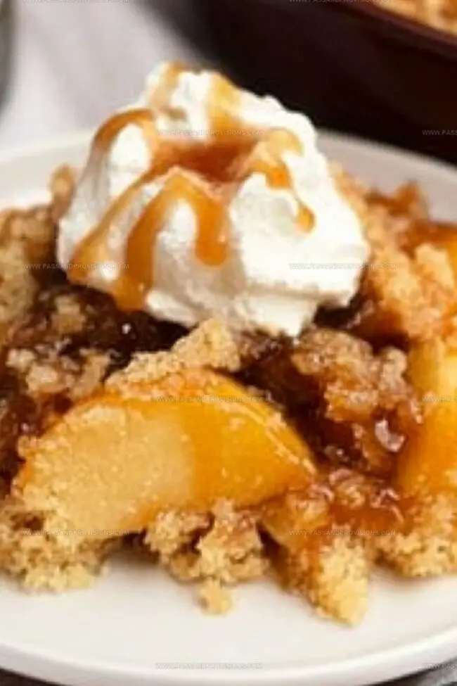- Foundation Layer: Distribute apple pie filling uniformly across the dish, gently dust with cinnamon, and cascade caramel sauce in elegant streams.