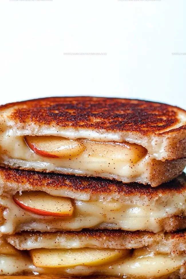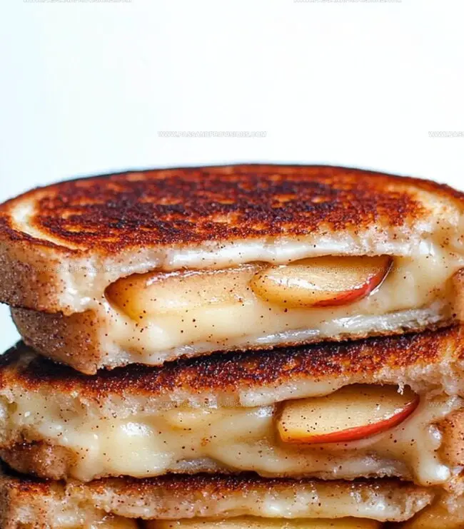 Allow sandwiches to rest briefly after cooking. Slice and serve while warm, savoring the sweet and savory combination of cinnamon, cheese, and apple.