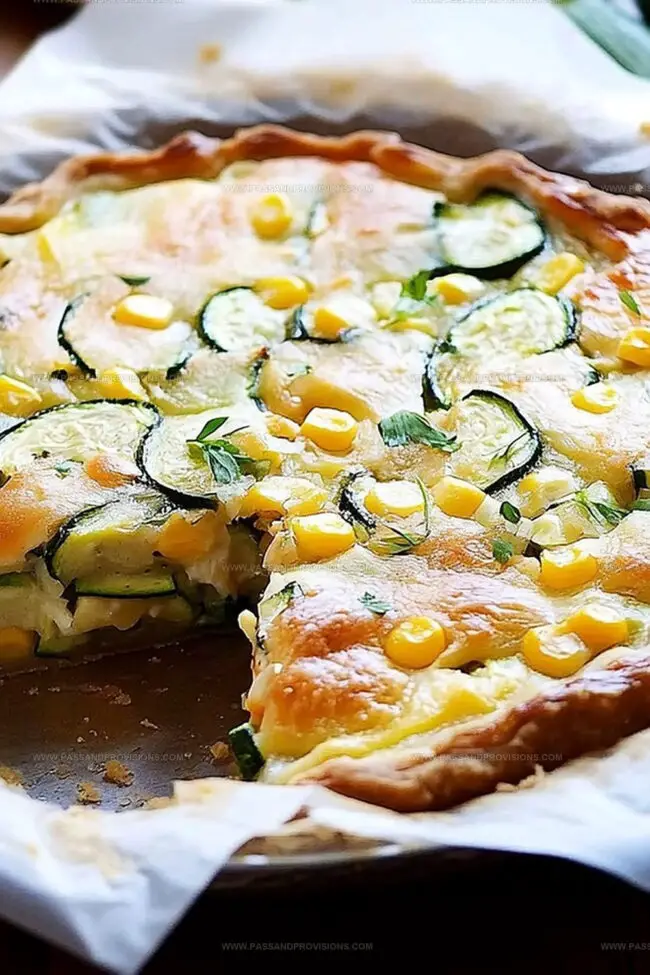 Crisp summer vegetables dance together in this delightful sweet corn and zucchini pie that captures the essence of seasonal bounty.