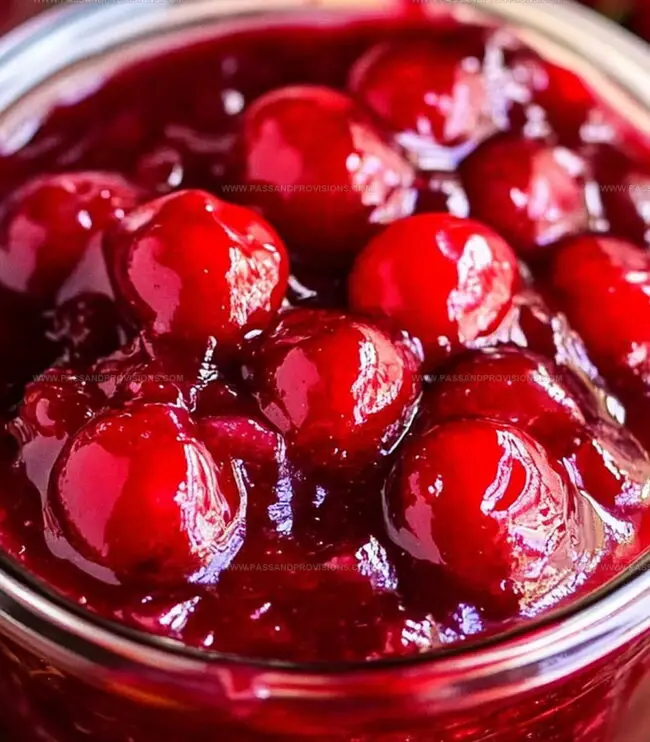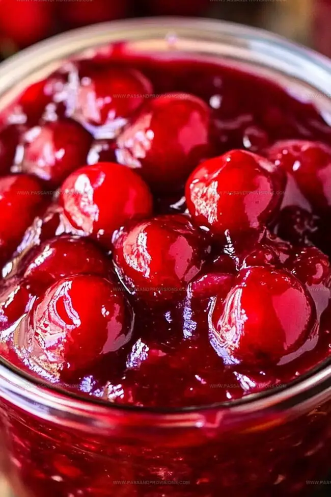 Homemade cherry pie filling brims with sweet-tart brilliance, showcasing ripe summer cherries in a luscious, glossy embrace. Spoon this crimson delight over desserts or enjoy straight from the jar, bringing pure orchard-fresh flavor to your culinary creations.