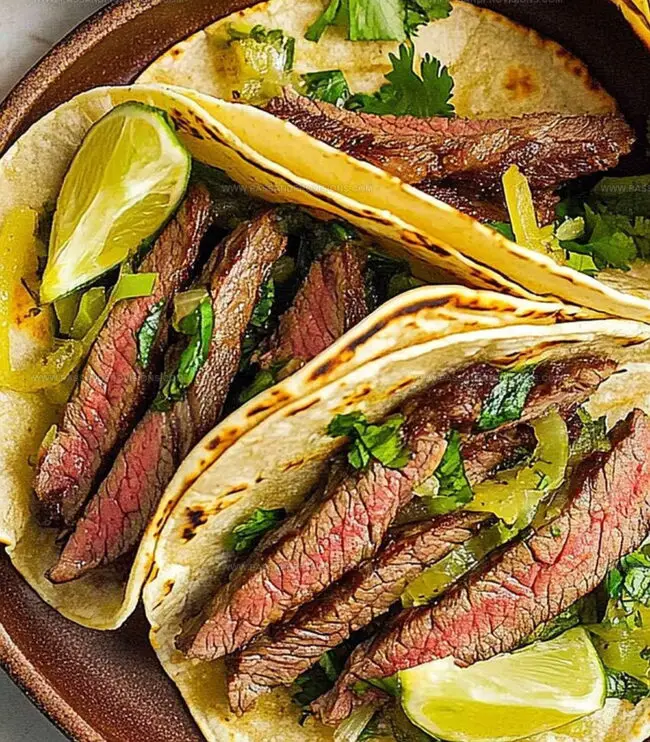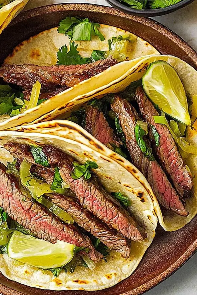 - Assemble Tacos: Slice steak against grain, layer onto warm tortillas. Top with grilled onions, fresh cilantro, crumbled cheese, and vibrant salsa. Garnish with lime wedges for bright, zesty finish.