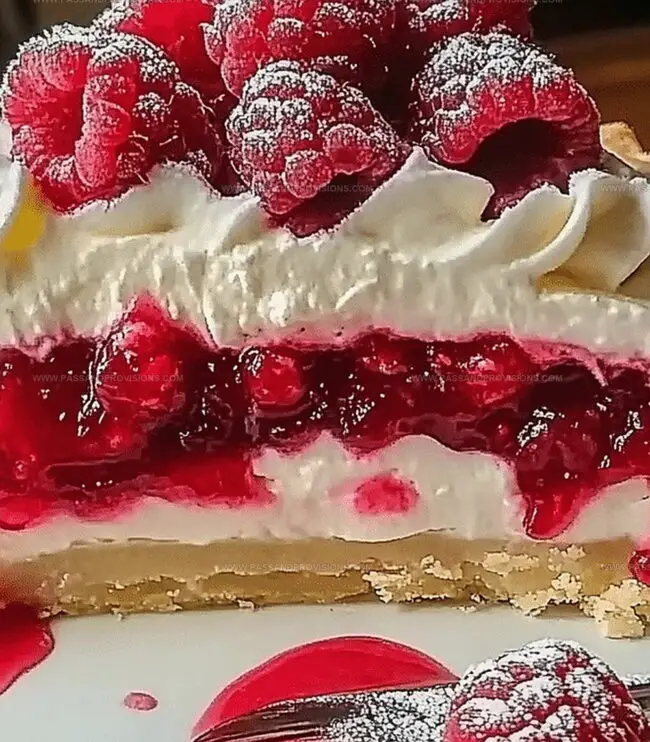 Silky lemon raspberry layered pie brings zesty Mediterranean sunshine to dessert tables. Smooth citrus and sweet berries dance together, creating a refreshing harmony that delights you with each elegant bite.