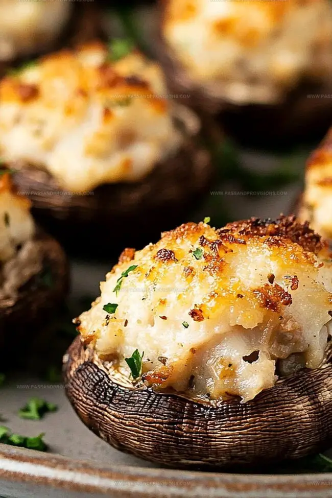 Elegant Appetizer Course: Serve these mushrooms as a sophisticated starter before a main seafood dish, paired with a crisp white wine like Sauvignon Blanc to complement the rich, creamy filling.