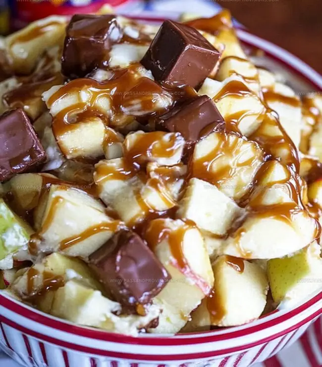 - Ingredient Breakdown: Core and dice apples into rustic bite-sized pieces, maintaining their vibrant skin. Slice Snickers bars into petite, uniform chunks that will distribute evenly throughout the mixture.