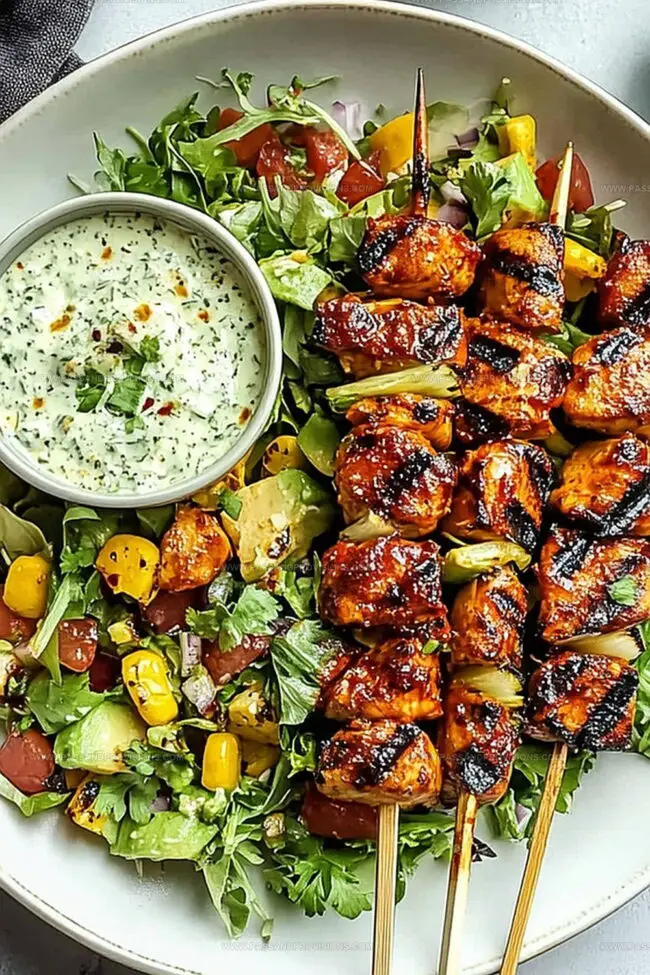 Juicy BBQ Chicken Skewer Salad Recipe: Summer’s Fresh Delight