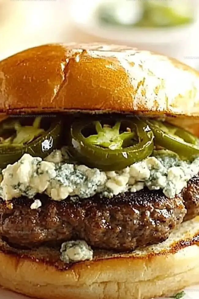 Sizzling jalapeno burgers with gorgonzola bring spicy, creamy magic to backyard grilling. Zesty peppers and tangy cheese create a bold flavor combination that elevates classic burger nights with irresistible southwestern flair.