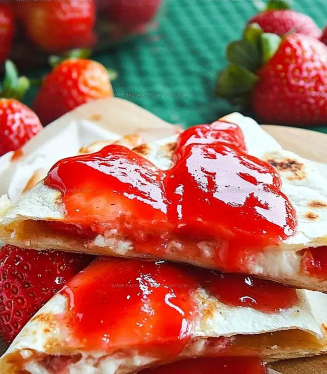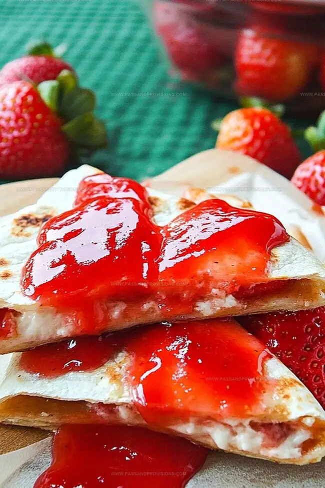 Warm, golden-edged tortillas embrace sweet strawberry cheesecakeadillas with delightful charm.