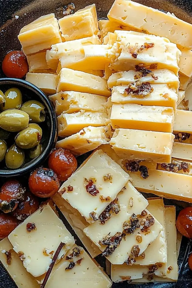 - Stack cheddar and cream cheese slices vertically to create an elegant, visually appealing presentation that also helps marinade penetrate evenly.