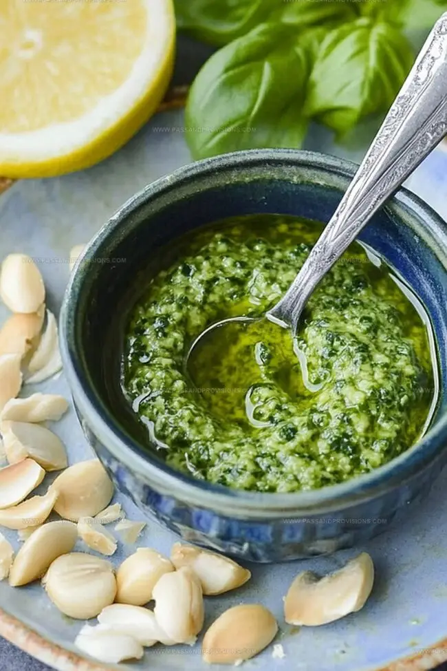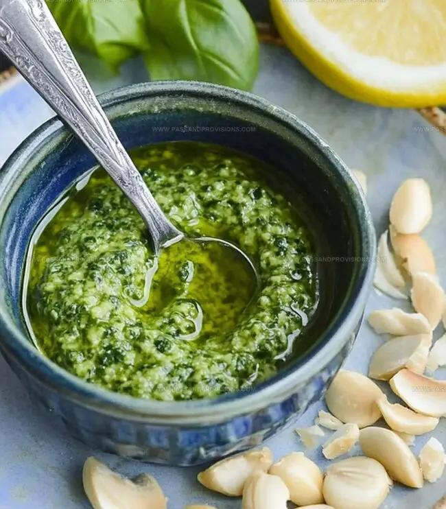 - Refine Flavor Profile: Enhance the pesto with a splash of lemon juice to brighten the taste, then carefully taste and calibrate seasoning, ensuring a balanced and vibrant result.