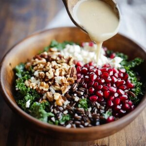 - Salad Assembly: Combine cooled wild rice with massaged kale, then artfully scatter pomegranate seeds, crumbled feta, toasted walnuts, and thinly sliced green onions throughout the mixture, ensuring an even distribution of ingredients.